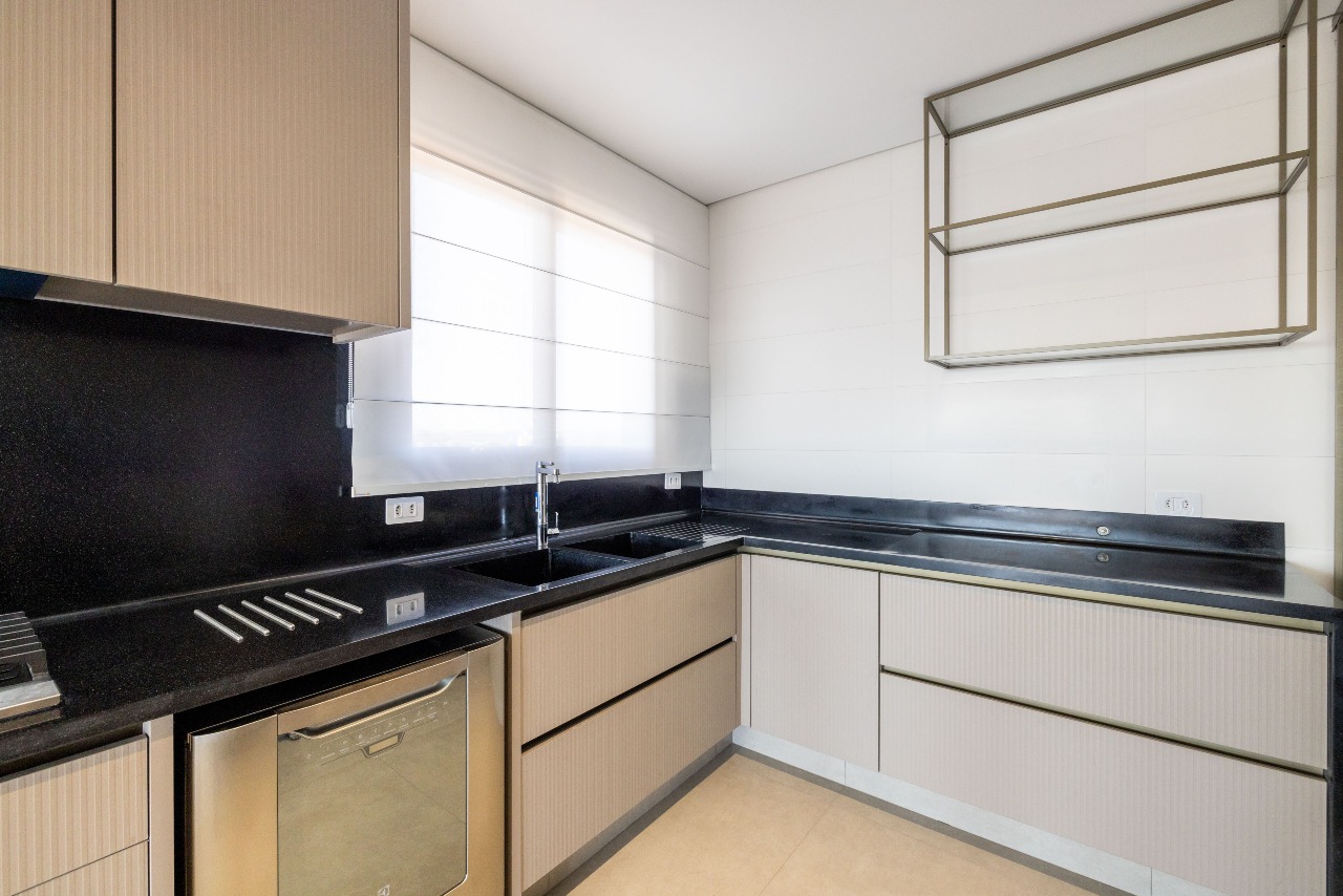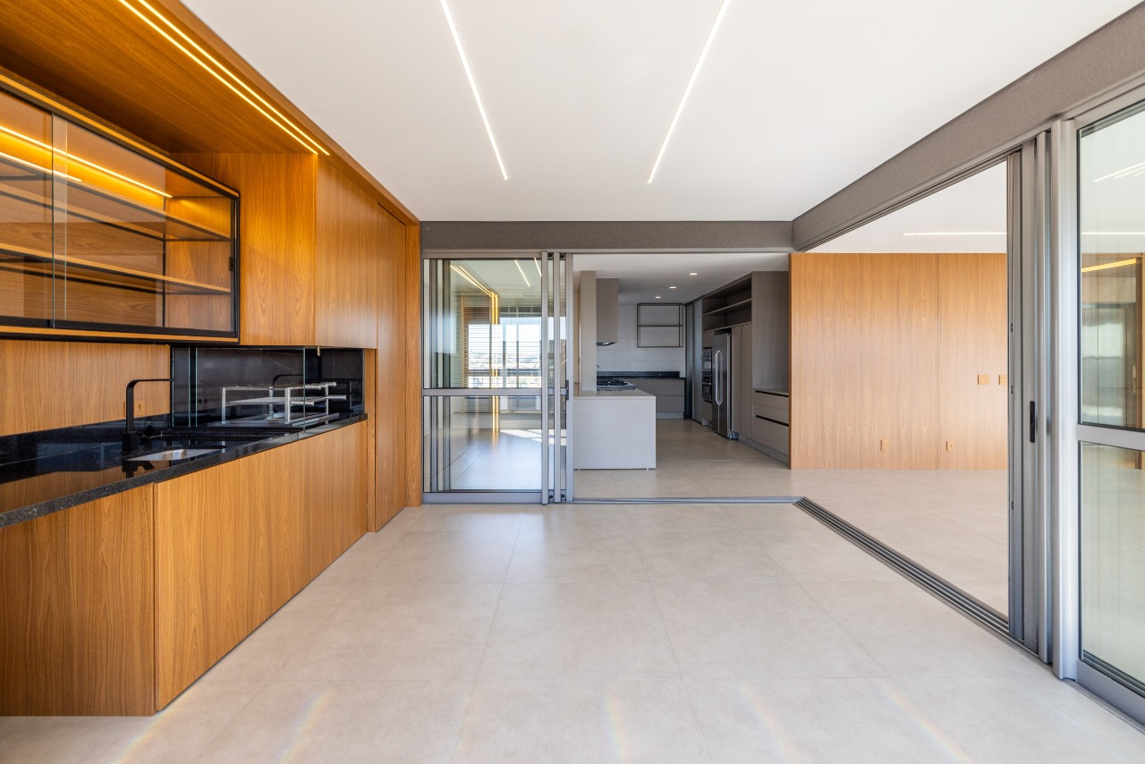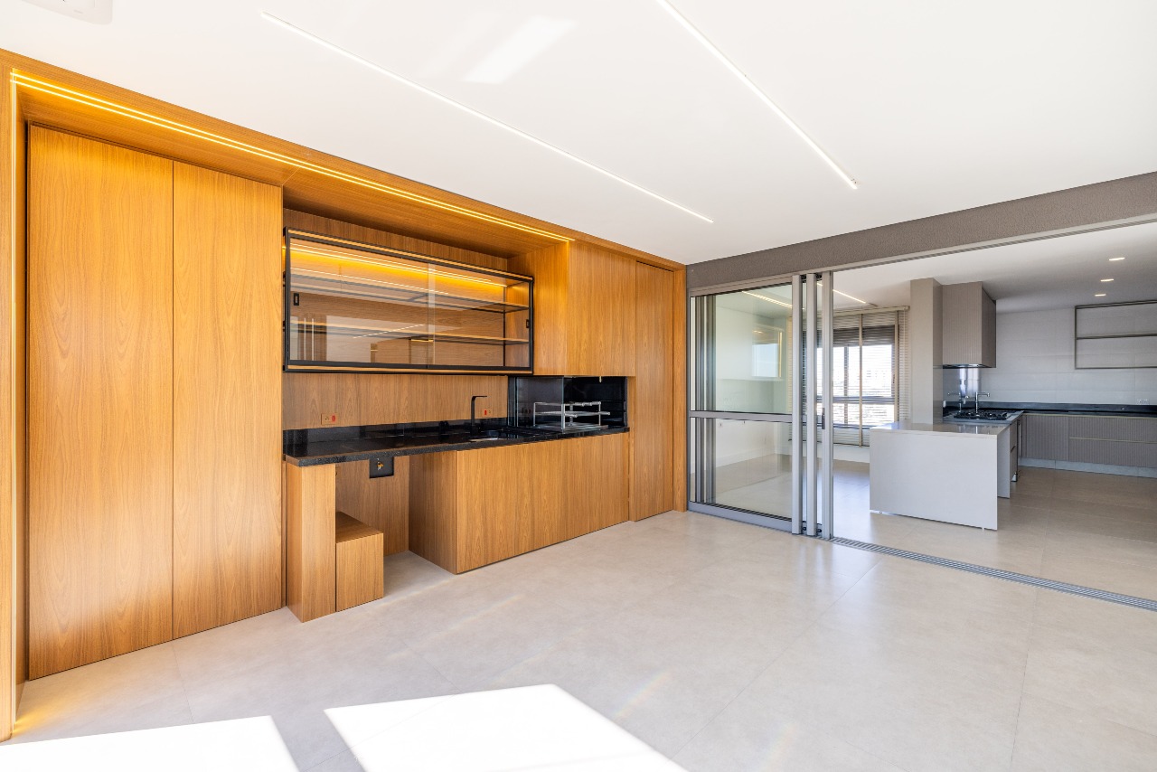 A é cozinha planejada em conceito aberto, conectada ao terraço gourmet — perfeito para receber com elegância.