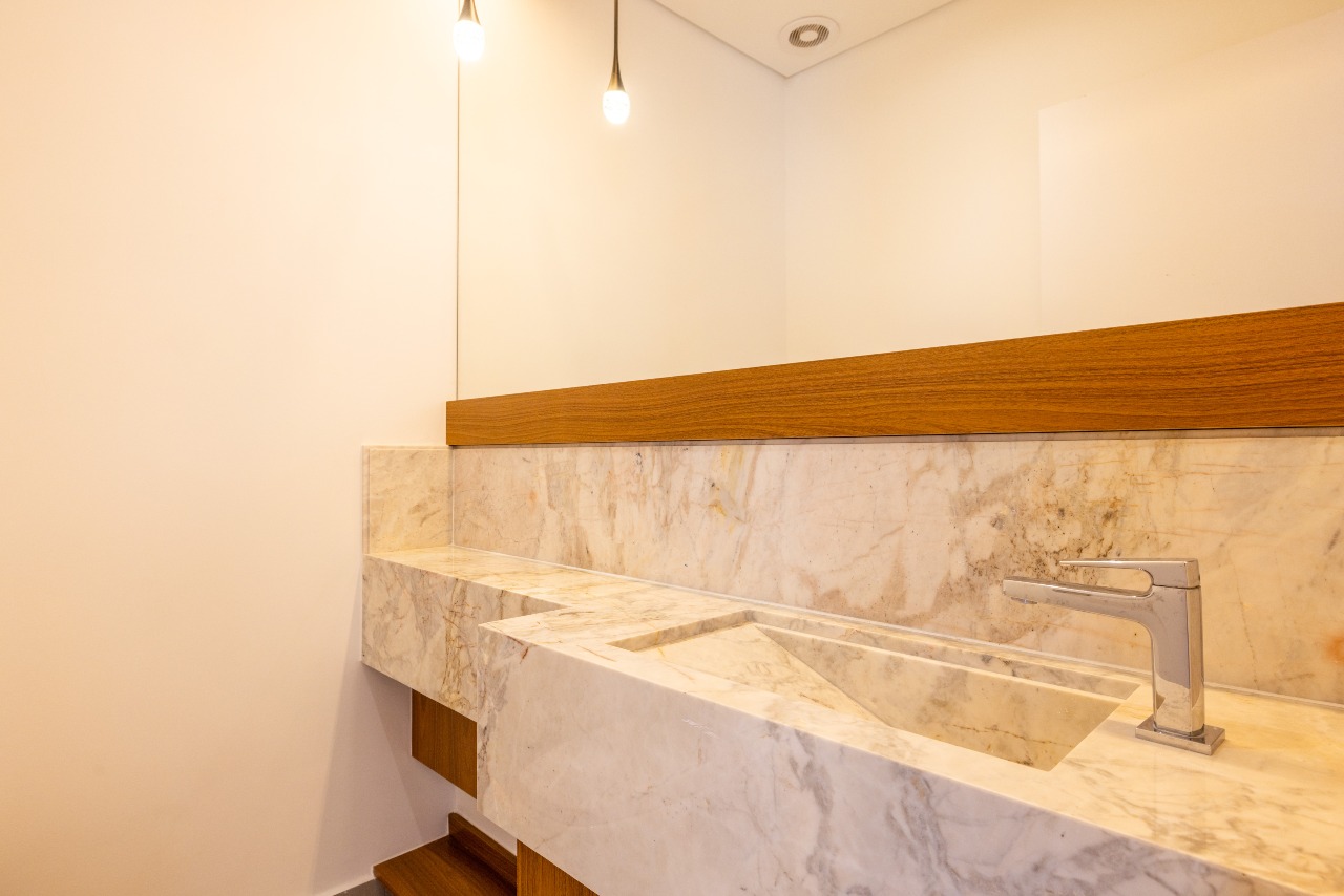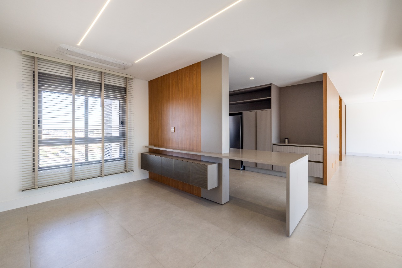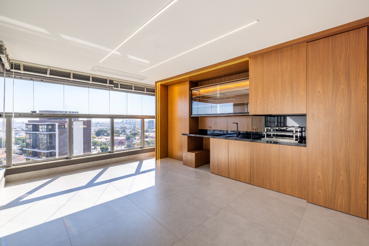 A é cozinha planejada em conceito aberto, conectada ao terraço gourmet — perfeito para receber com elegância.