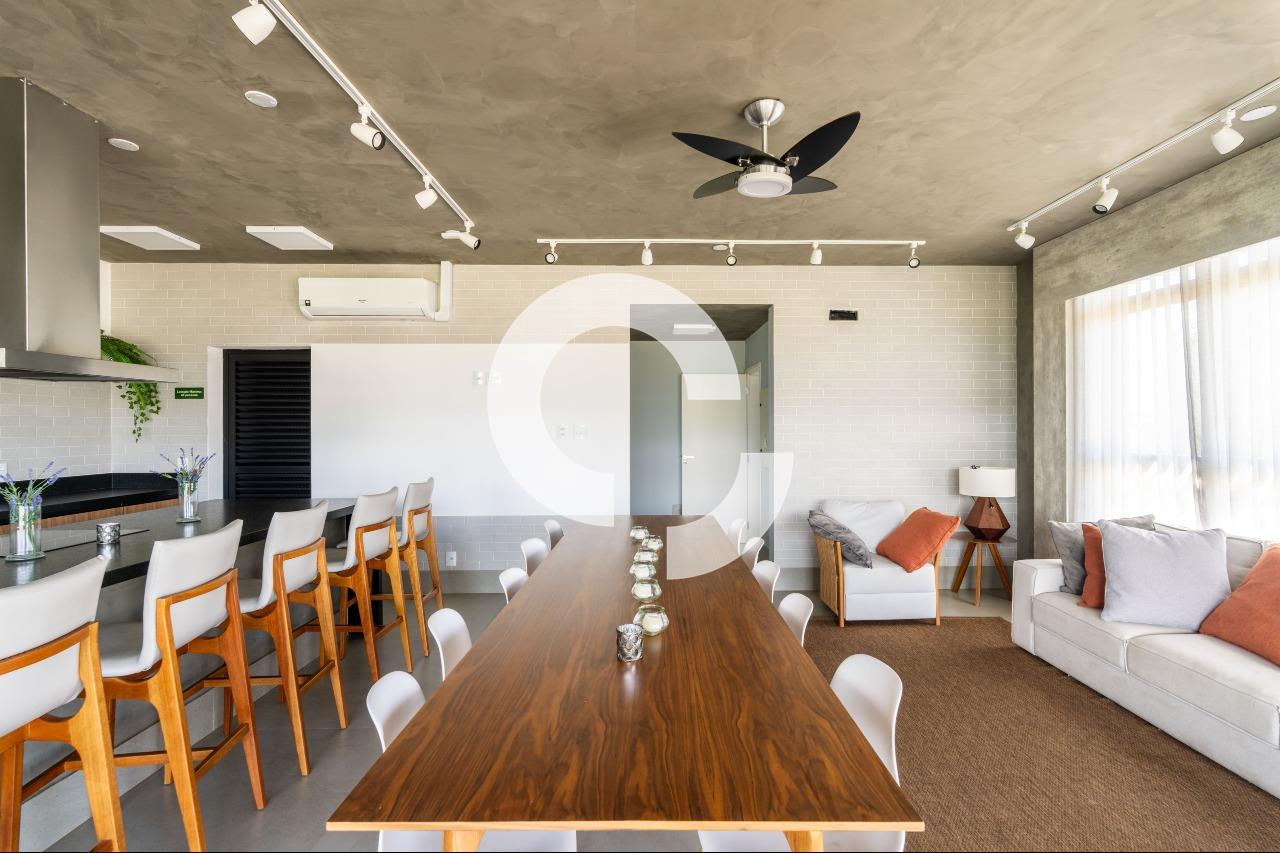 Os espaços fluidos e integrados, como a sala de TV e sala de jantar, criam uma atmosfera acolhedora e inundada de luz natural, ideal para momentos compartilhados em família.