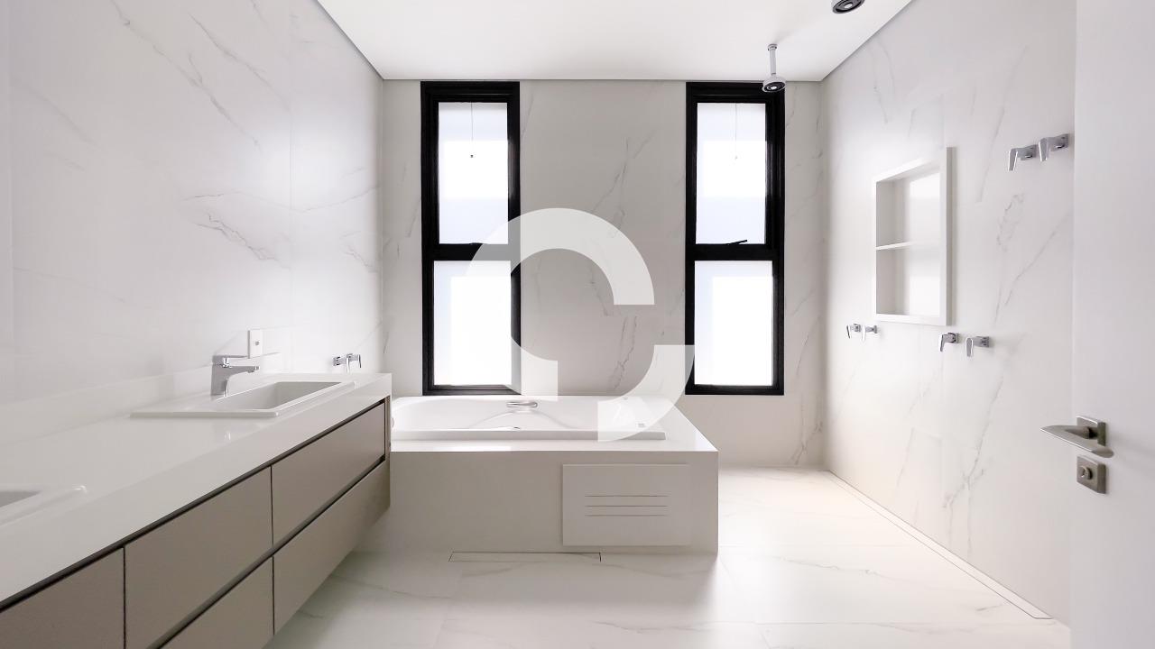 No pavimento superior, o imóvel dispõe de escritório e 4 suítes, todas com sacada, janelas automatizadas e infraestrutura para ar-condicionado. Os acabamentos são de altíssimo padrão, refletindo cuidado em cada detalhe.