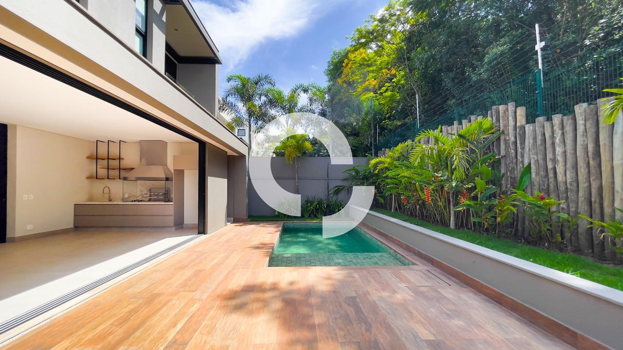 A área social conta com cozinha integrada à sala de jantar e ao espaço gourmet, criando um ambiente elegante e perfeito para receber, além de um lazer encantador com piscina e total privacidade. No pavimento inferior, home theater, lavabo, despensa e lavanderia garantem conforto e funcionalidade.