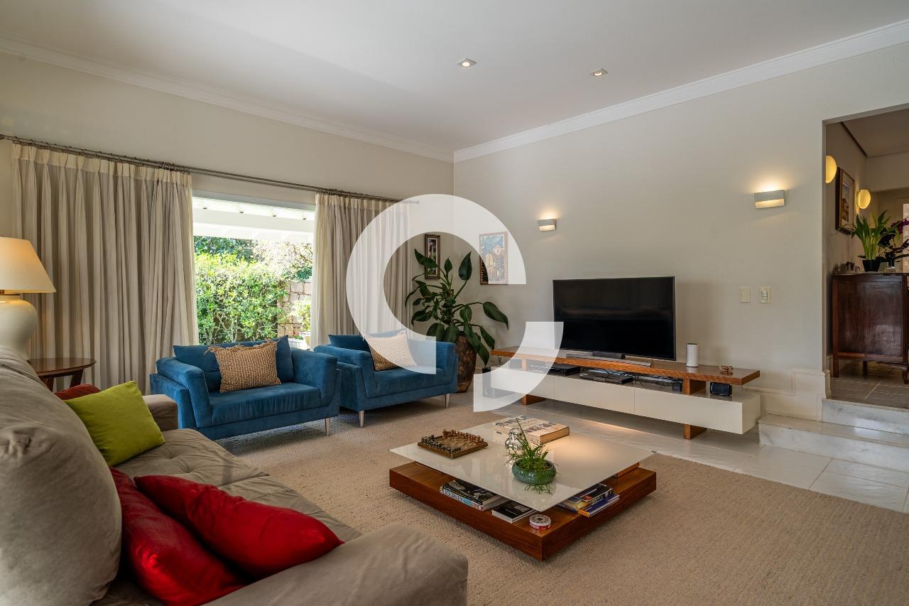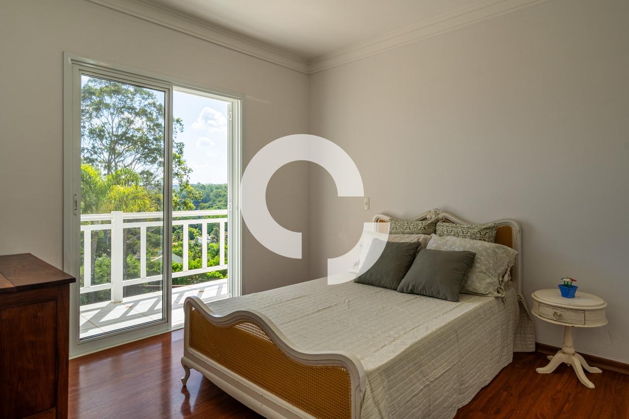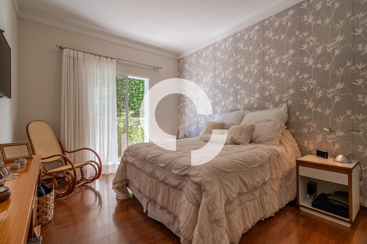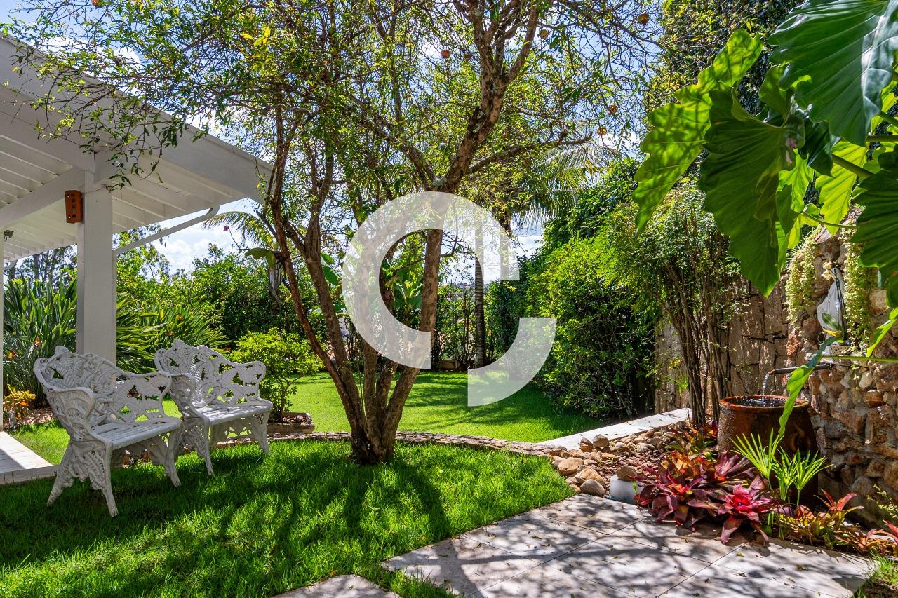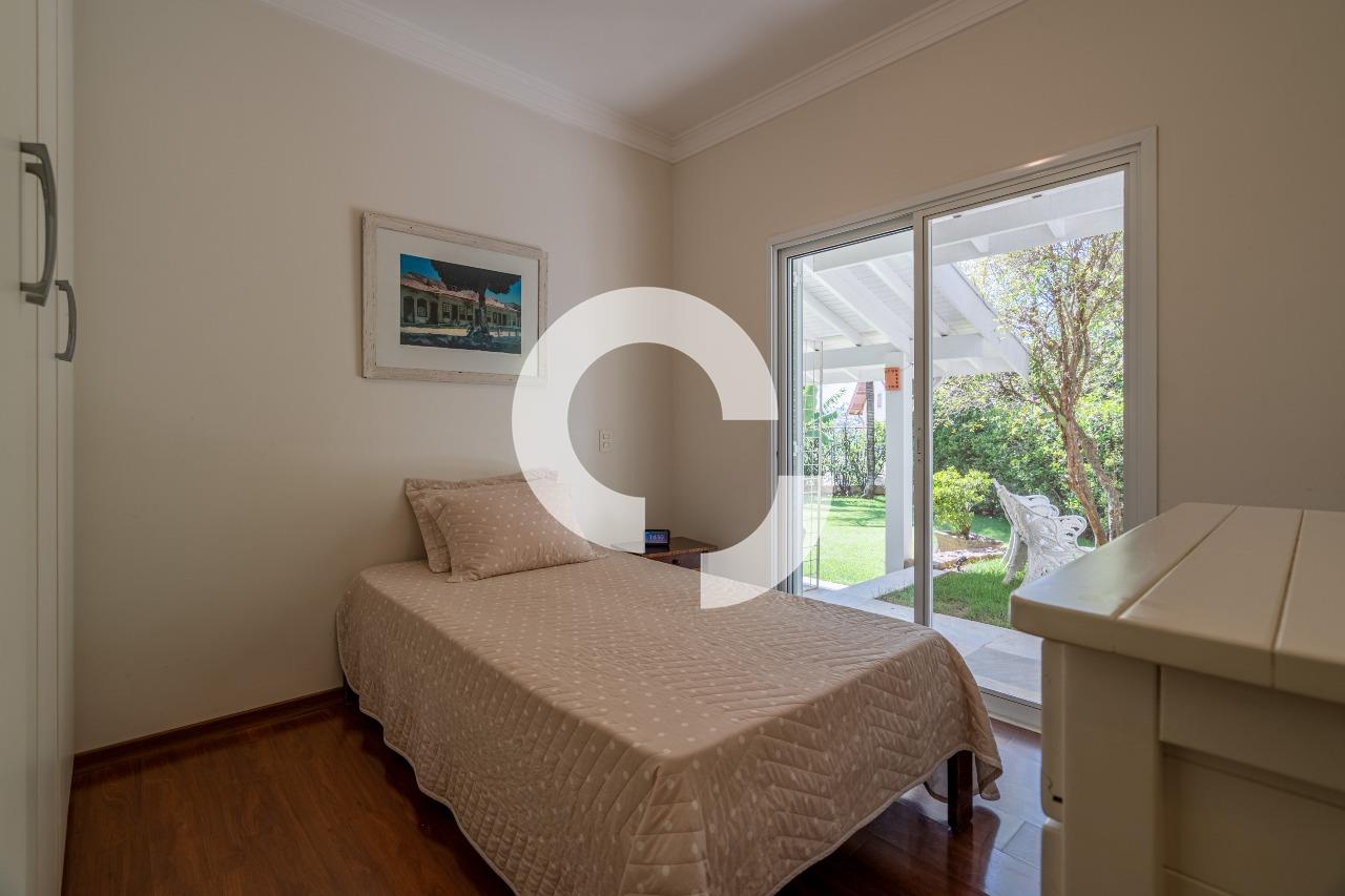 Em uma rua tranquila dentro do condomínio, esta belíssima residência está à venda e encanta pela perfeita integração e vista definitiva para área preservada.