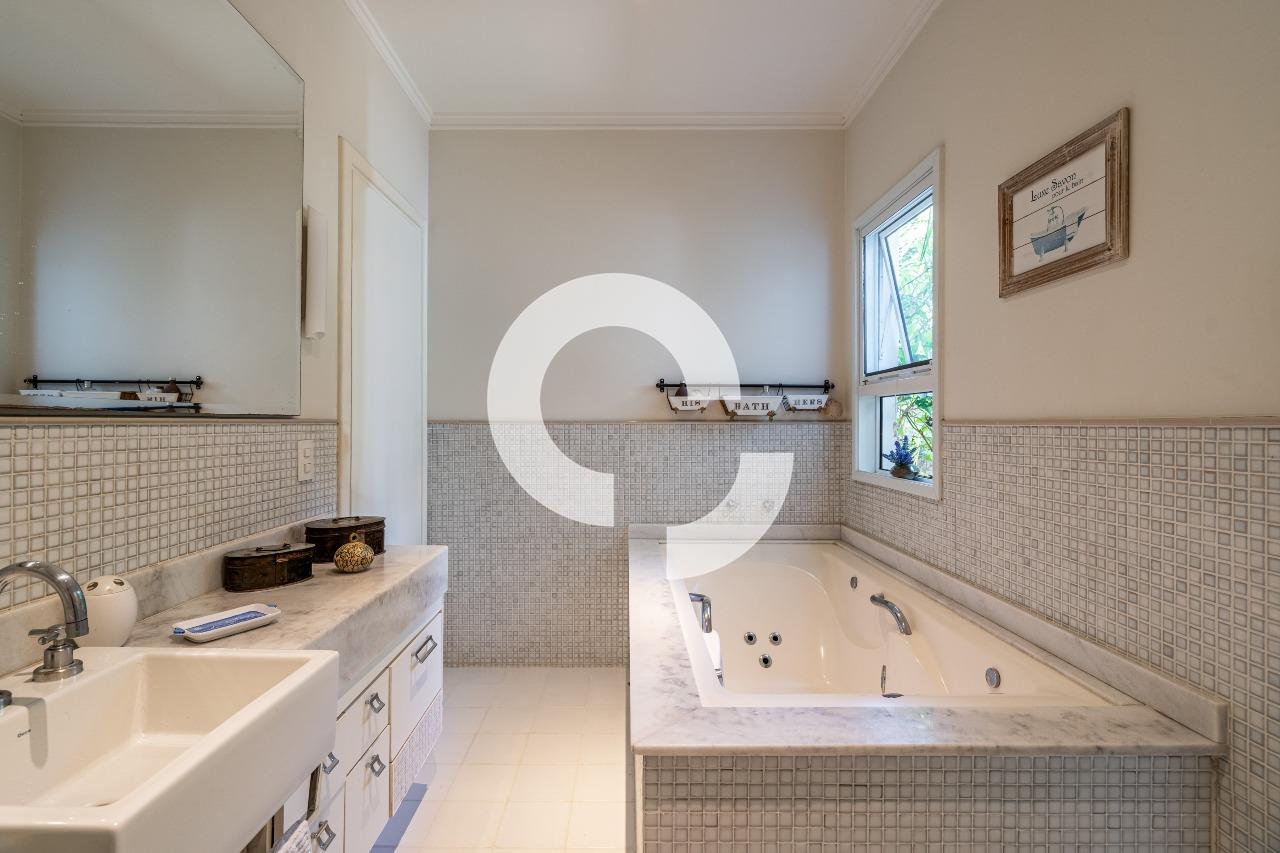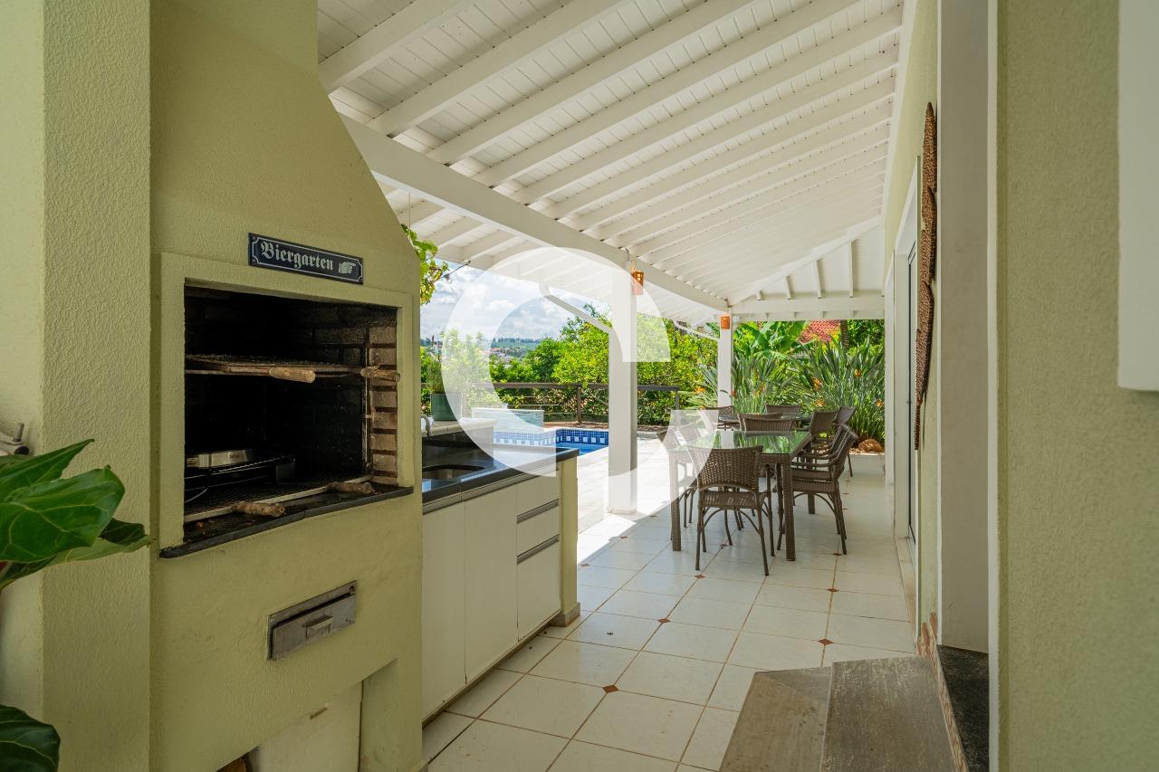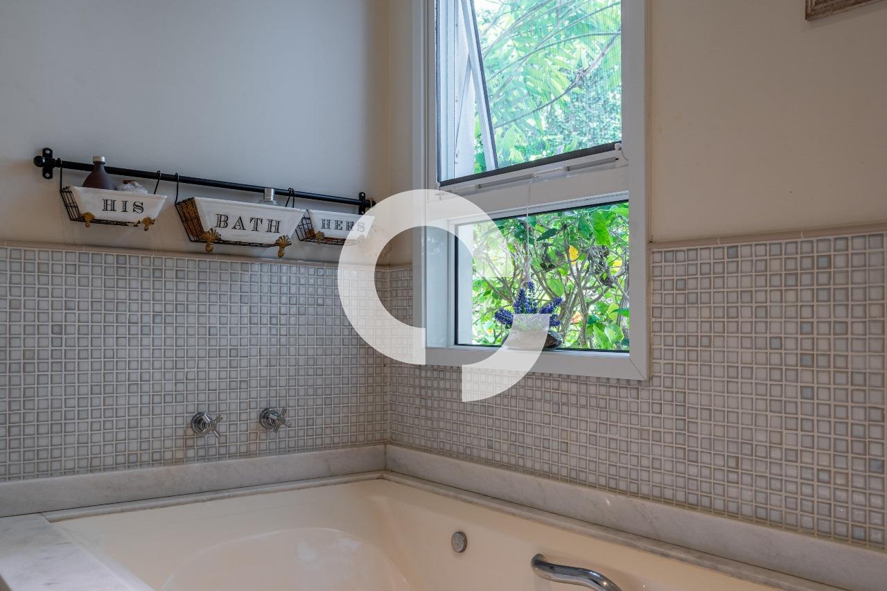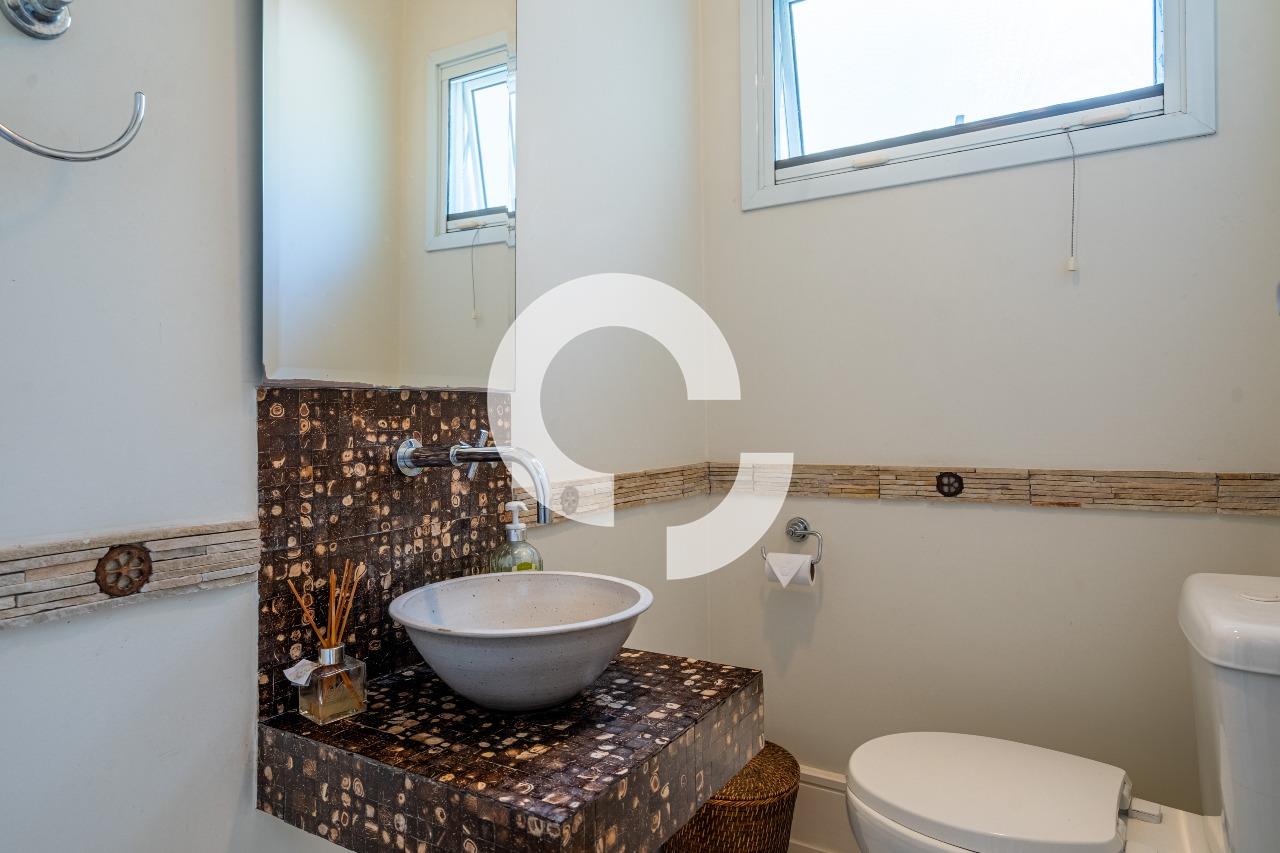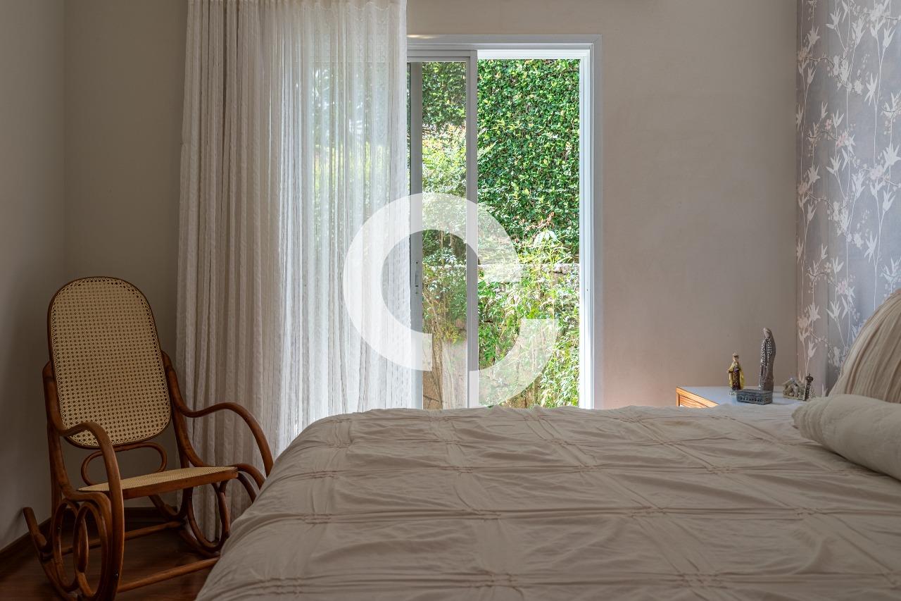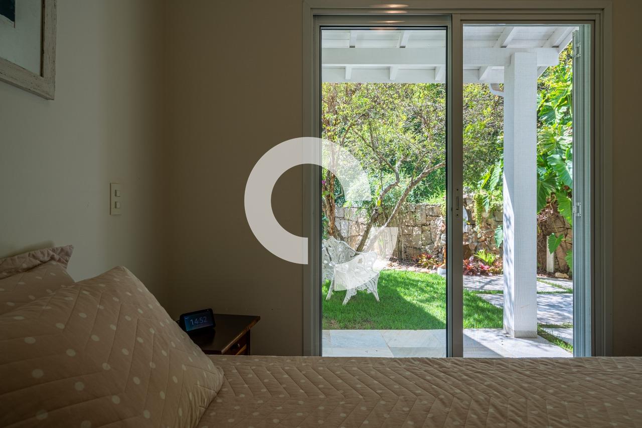 Em uma rua tranquila dentro do condomínio, esta belíssima residência está à venda e encanta pela perfeita integração e vista definitiva para área preservada.