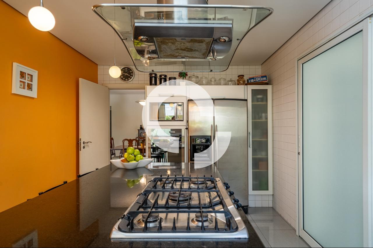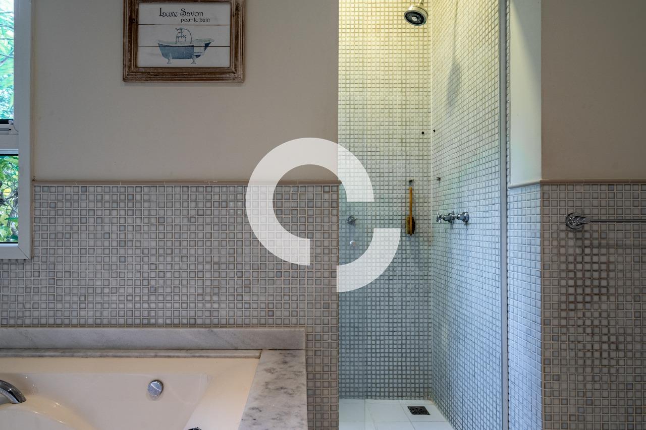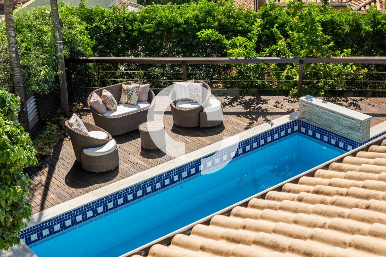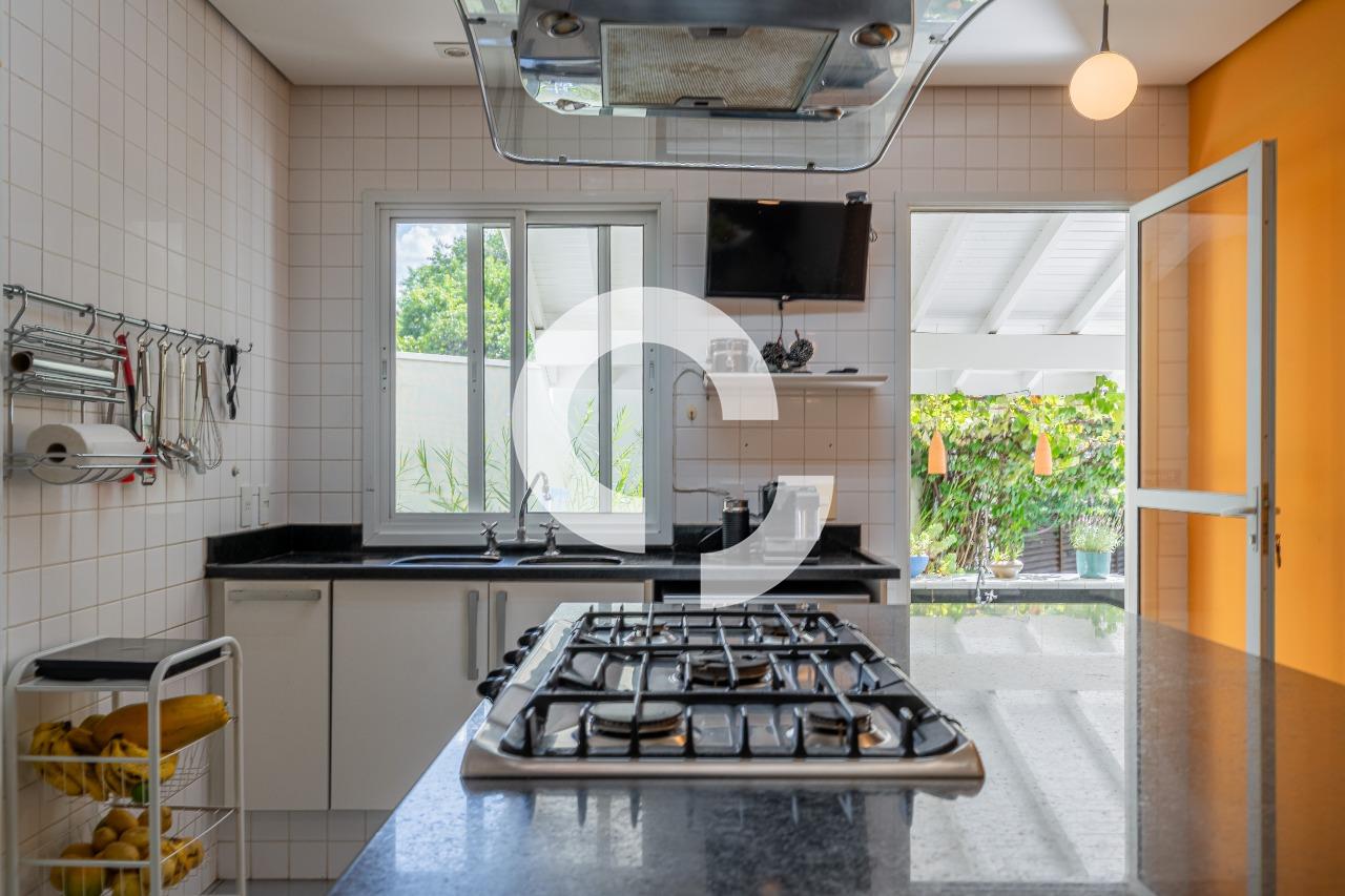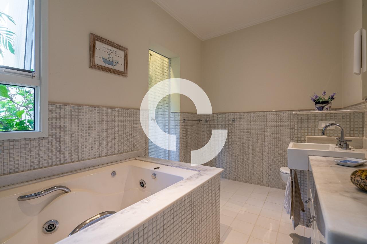 Em uma rua tranquila dentro do condomínio, esta belíssima residência está à venda e encanta pela perfeita integração e vista definitiva para área preservada.