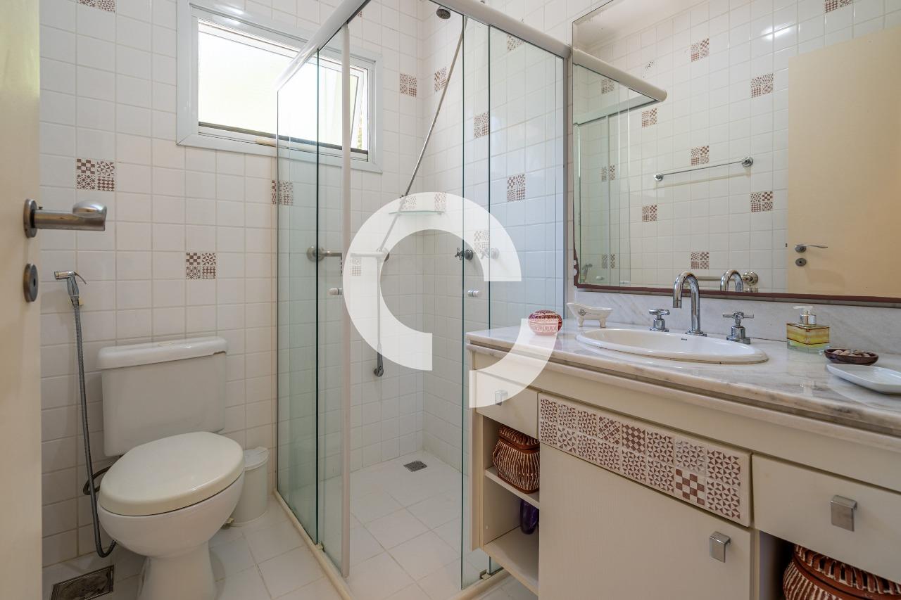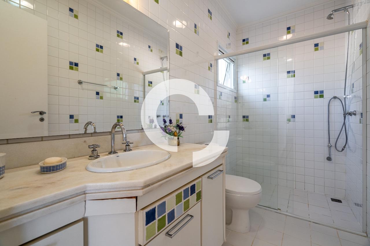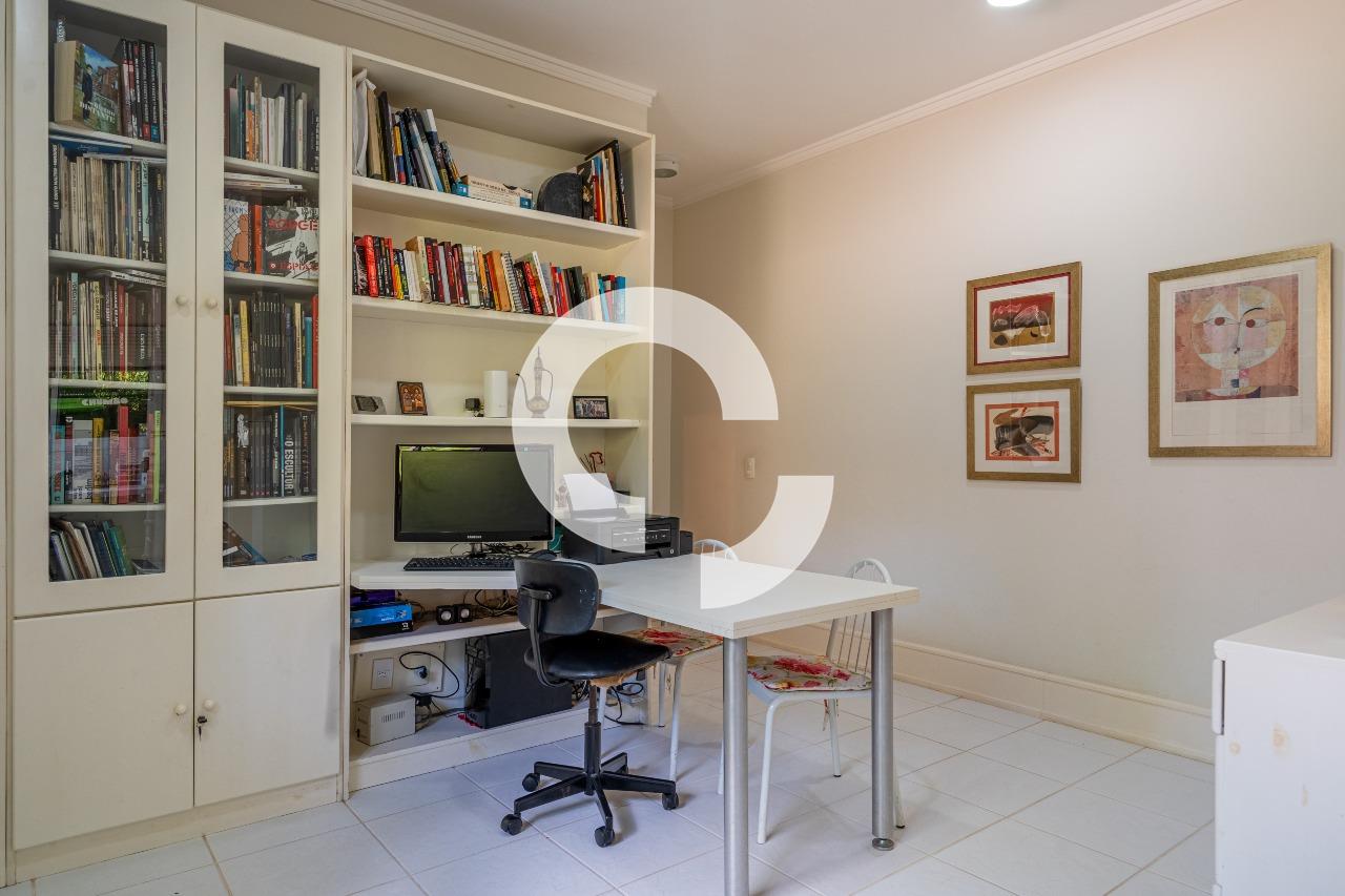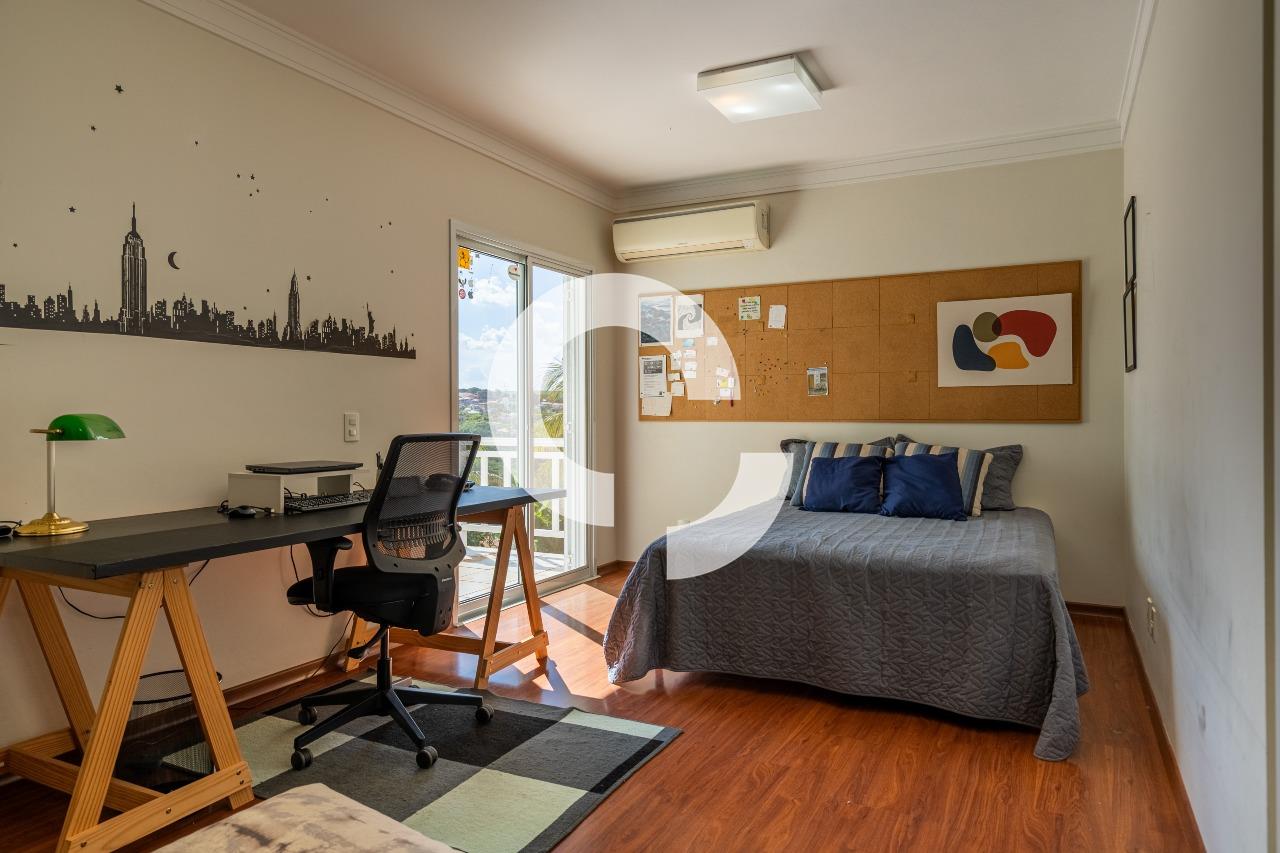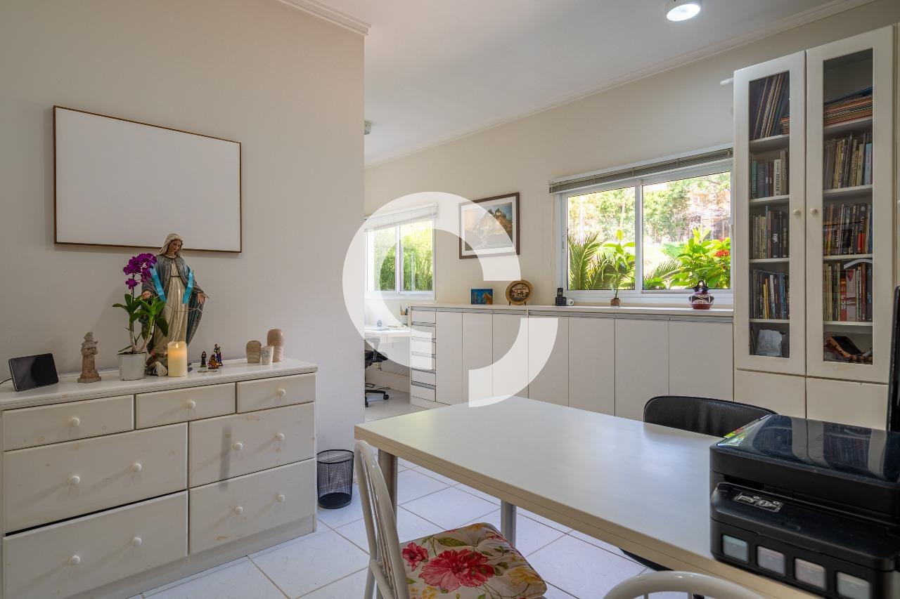 A área íntima dispõe de 5 dormitórios, sendo 2 suítes no térreo, trazendo praticidade e conforto. O imóvel conta ainda com um amplo escritório, com área versátil e multiuso, que pode ser facilmente adaptado como sala de TV, home theater, sala de estudos ou espaço para hobbies — um ambiente flexível que se molda às necessidades da família.